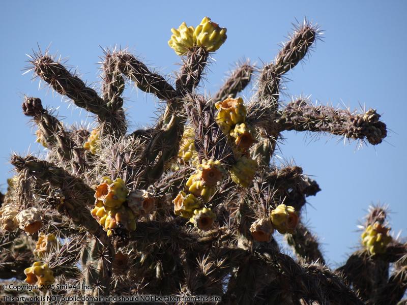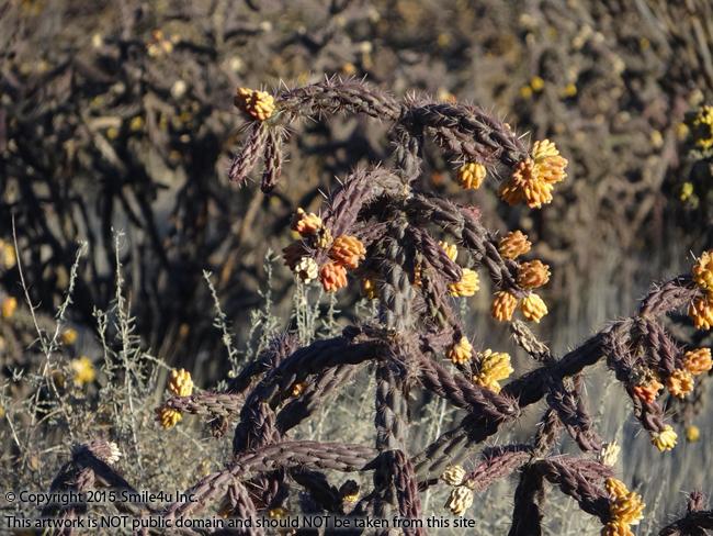 The property is mostly flat with a lot of scattered cholla that was blooming a pretty yellow - and yep they hurt when you touch them!