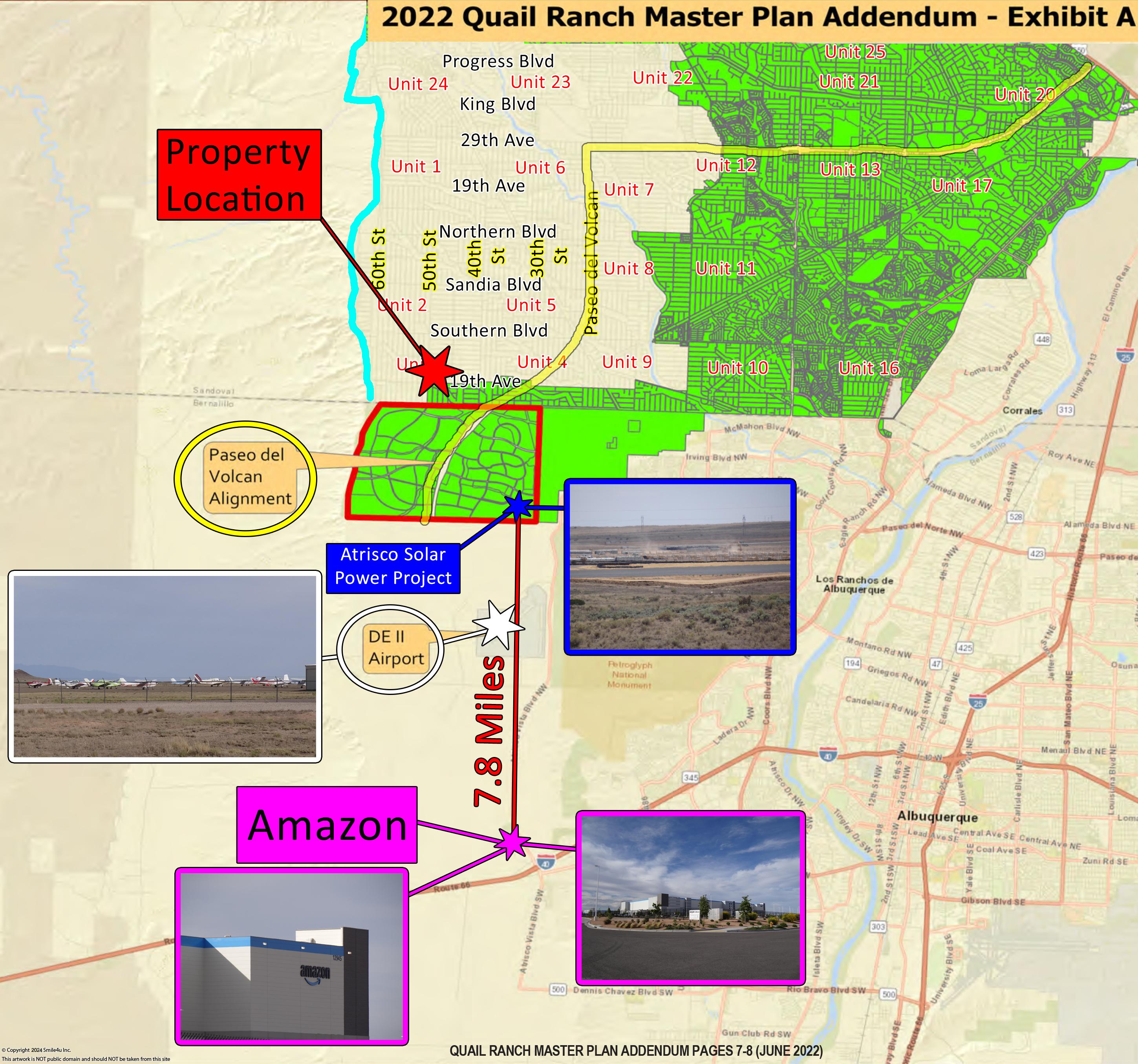 An expansion to the road system includes the 30 mile planned Paseo del Volcan (PDV) corridor that will come pass thru to Hwy 550! I have seen parts of this being built over the years. It’s a four lane freeway facility that starts off I-40 just west of Atrisco Boulevard at heads N up to the city center before heading east to US‐550 by I-25. We overlayed the PDV corridor onto the unit map so you can see how it will go thru the city. This property sits just NW of it in U23 for those into finding things on maps!